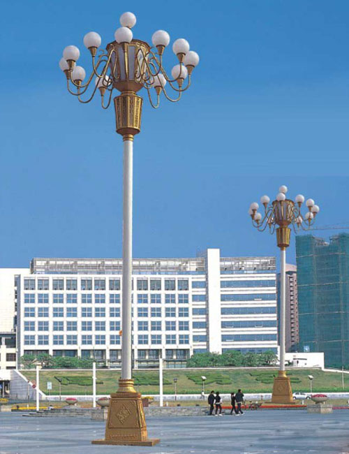 整体高大魁梧,顶端弯臂花枝招展,表漆多为金黄色,尽显中国传统文明的皇家贵族风范。整体外观给人的感觉首屈一指,但是站在专业的照明角度来评价中华灯的话,其实它有很多美中不足的地方,大有华而不实之感。整体来说玉兰灯在外很相似,顶端都是以亚克力灯球为主,来烘托整体的协调和美观,不同的是,玉兰灯灯球里的光源所起到的作用并非照明,而是点缀。