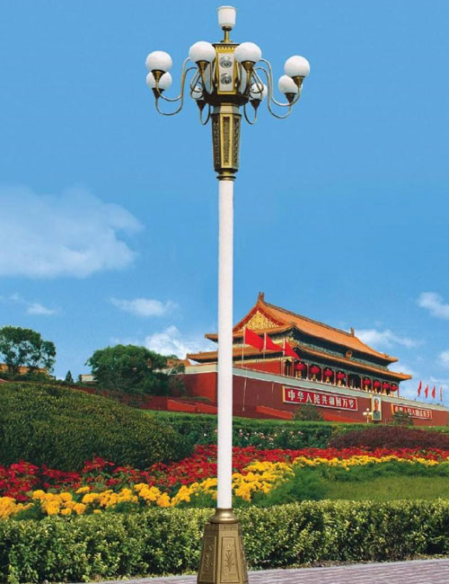 整体高大魁梧,顶端弯臂花枝招展,表漆多为金黄色,尽显中国传统文明的皇家贵族风范。整体外观给人的感觉首屈一指,但是站在专业的照明角度来评价中华灯的话,其实它有很多美中不足的地方,大有华而不实之感。整体来说玉兰灯在外很相似,顶端都是以亚克力灯球为主,来烘托整体的协调和美观,不同的是,玉兰灯灯球里的光源所起到的作用并非照明,而是点缀。